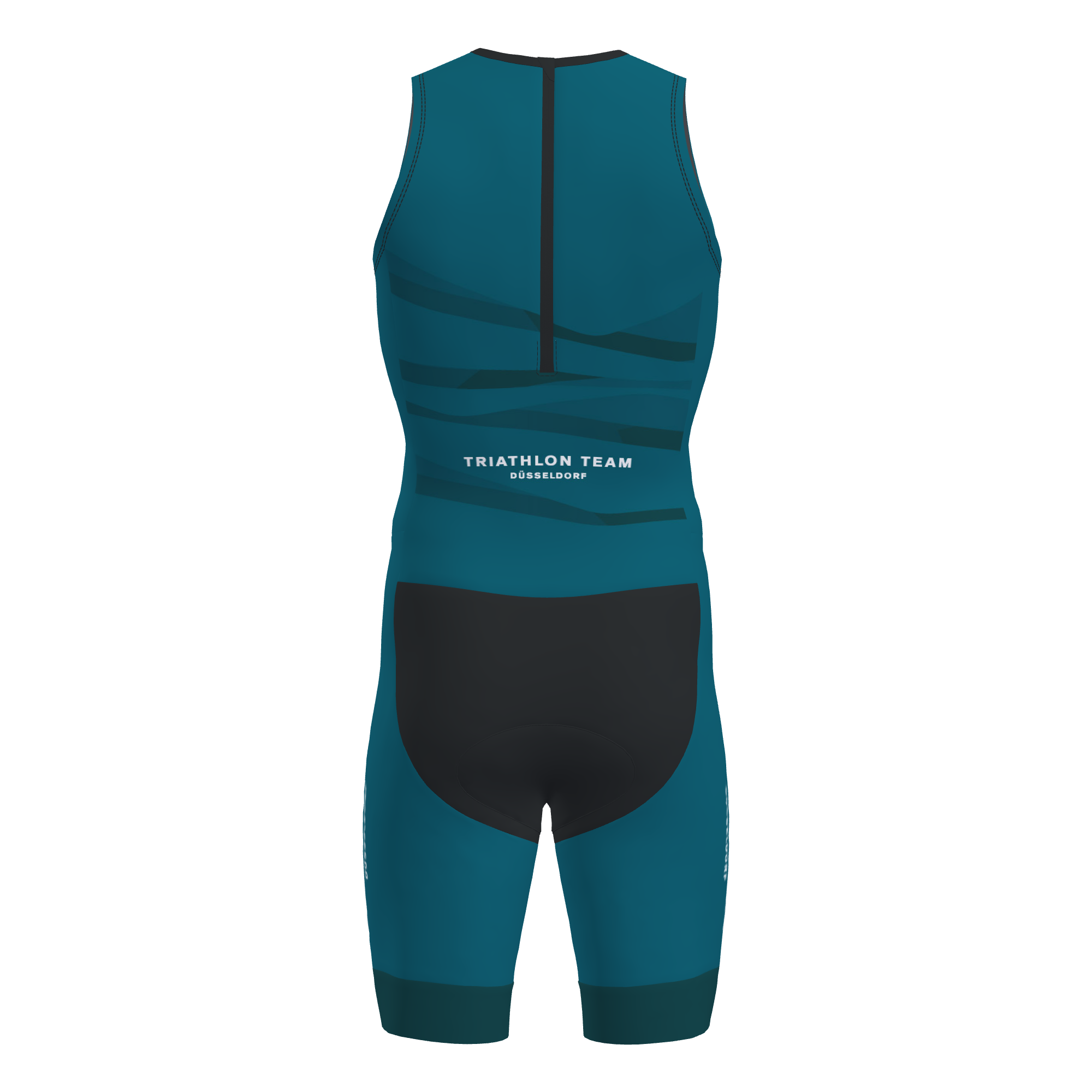 The suit is ITU approved with zipper with drawstring at the back. It has an elastic edge band round the collar for comfort. There is a solid-coloured material at crotch/back area for protection and abrasion resistance. Bottom of legs have 7cm wide silicone cuffs to keep the suit in place. The top-quality sprint distance triathlon padding is from Italian Elastic Interface. This suit has no pockets at the back. Due to the short distance this is not needed.