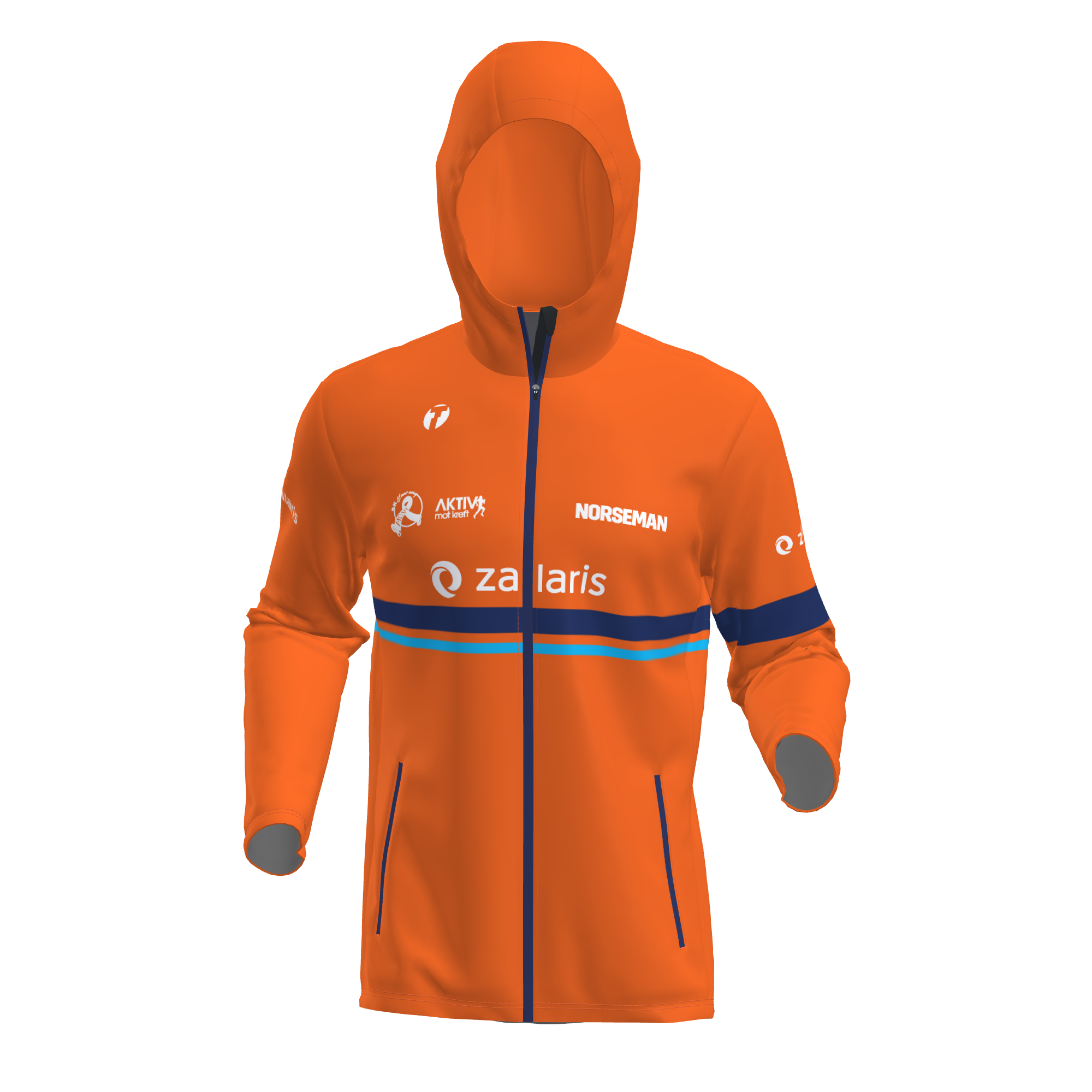 New product in our Fusion series. A hooded jacket with a long zipper in front with a chin guard at the top. The jacket has two side pockets with zippers, and the bottom lining can easily be adjusted with an elastic band. The jacket is perfect for clubs that want their own design since the entire jacket is printable.